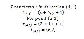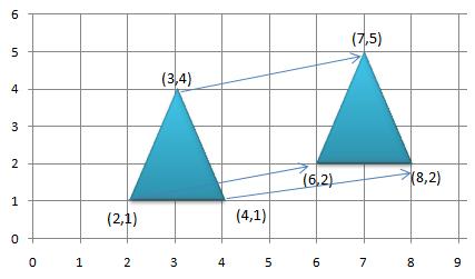 For example, in order to translate a triangle in the plane, points (2,1), (3,4),(4,1), by 4 units to the right and 1 unit upwards; every point forming the triangle will need to move with the same direction and magnitude as the translation vector < 4,1>.