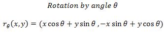 A rotation is defined by a fixed point and a constant angle of rotation. In a rotation, every point on an object is transformed about the same fixed point (x,y) and the same rotation angle.